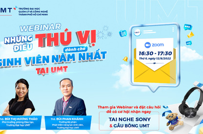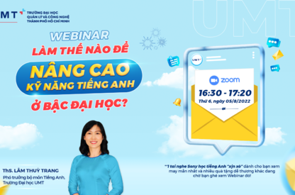 Tiếng Anh chính là công cụ để các bạn trở thành công dân toàn cầu, nhưng rất nhiều bạn học sinh chưa tìm được phương pháp học Tiếng Anh hiệu quả. Do đó, ngày 5/8/2022, Trường Đại học UMT đã tổ chức Webinar trực tuyến trên Zoom và livestream trên Fanpage để giúp các tân sinh viên có bí quyết học tập và cải thiện Tiếng Anh khi lên đại học.